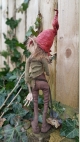 Varden is a unique, OOAK (one-of-a-kind) fantasy art doll sculpture. No molds have been taken or used. His head, hands, arms and feet are sculpted in Cosclay polymer clay, hand painted with artist's acrylics and finished with matte and gloss varnishes. Cosclay gives delicate details like fingers and ears the ability to flex and bend, making them more durable and less fragile. He is approx. 15 inches tall to the very top of his hat, built predominantly over a strong wire armature with a soft stuffed body. His neck armature is made from a separate plastic ball and socket armature which allows his head to be repeatedly moved and repositioned - the neck armature will never tire or break with normal use. Arms and legs are also gently poseable but care must be taken not to reposition excessively for longevity of this function. Dressed in faux suede brown trousers with yellow stitching, green fabric top and red leather hat with dark green suede tie belt, featuring clothing hand sewn and aged by the artist. Other materials include onyx bead eyes and synthetic hair. Signed with Faunley Fae initials stamped under foot.
