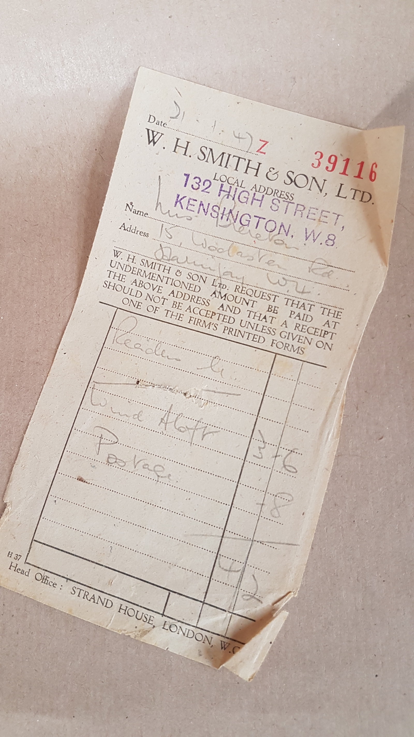 Also included with this piece is an original invoice that came with the lower book, 'Wind Aloft' from its original purchase, dated 21st January 1947.