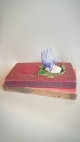 This Faerie Bottom Book Sculpture is a OOAK (one-of-a-kind) fantasy art sculpture - No molds have been taken or used. Featuring a faerie bottom poking out of two carved-out vintage books. The books have been fixed into position and cannot be opened. The faerie is sculpted in professional polymer clay, hand painted with artist's acrylics and finished with matte and gloss varnishes with handmade purple-toned sparkling wings. The lower book measures approx. 18cm x 12cm with the total height of the sculpture approx 10cm. Other materials include, grass flock and both faux and real preserved moss.
