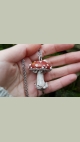 One of a kind (OOAK) hand sculpted and painted red Amanita polymer clay mushroom pendant necklace sculpture. Approx 4.5 cm tall and strung on a silver, non-rusting (won't turn your skin green!) stainless steel necklace chain approx. 80cm length in total, hanging nice and long when worn. Painted with artist's acrylics and sealed with a matte varnish.