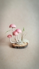 This mushroom sculpture is a OOAK (one-of-a-kind) art sculpture - no molds have been taken or used. Inspired by vintage botanical illustrations, featuring hand-sculpted polymer clay mushrooms painted in acrylics with a matte varnish and mounted on a rustic wood slice base. The total height is approx. 2 inches. Other materials include preserved and faux moss.