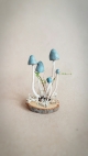 This mushroom sculpture is a OOAK (one-of-a-kind) art sculpture - no molds have been taken or used. Inspired by vintage botanical illustrations, featuring hand-sculpted polymer clay mushrooms painted in acrylics with a matte varnish and mounted on a rustic wood slice base. The total height is approx. 2.5 inches. Other materials include preserved and faux moss.