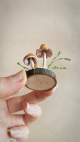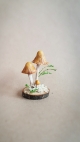 This mushroom sculpture is a OOAK (one-of-a-kind) art sculpture - no molds have been taken or used. Inspired by vintage botanical illustrations, featuring hand-sculpted polymer clay mushrooms painted in acrylics with a matte varnish and mounted on a rustic wood slice base. The total height is approx. 2 inches. Other materials include preserved and faux moss.