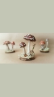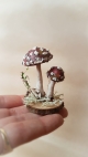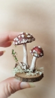 This mushroom sculpture is a OOAK (one-of-a-kind) art sculpture - no molds have been taken or used. Inspired by vintage botanical illustrations, featuring hand-sculpted polymer clay mushrooms painted in acrylics with a matte varnish and mounted on a rustic wood slice base. The total height is approx. 6cms. Other materials include preserved and faux moss.