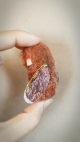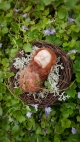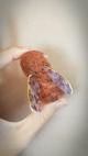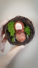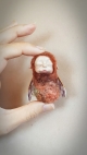 This faerie is a unique, OOAK (one-of-a-kind) fantasy art doll sculpture. No molds have been taken or used. It's head is sculpted in professional polymer clay, hand painted with artist's acrylics and finished with a matte varnish. Measuring approx. 6-7cms in length, built over an armature with a soft body. Silk Moth Faerie Babies are swaddled in lightly needle-felted, hand dyed silk for a soft, textured finish with handmade wings and finished with a sprinkle of glitter.
