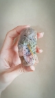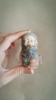 This faerie is a unique, OOAK (one-of-a-kind) fantasy art doll sculpture. No molds have been taken or used. It's head is sculpted in professional polymer clay, hand painted with artist's acrylics and finished with a matte varnish. Measuring approx. 6-7cms in length, built over an armature with a soft body. Silk Moth Faerie Babies are swaddled in lightly needle-felted, hand dyed silk for a soft, textured finish with handmade wings and finished with a sprinkle of loose glitter.